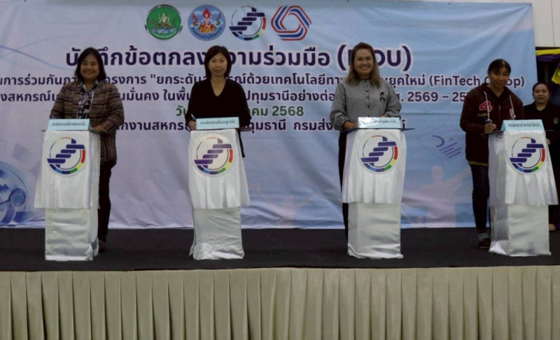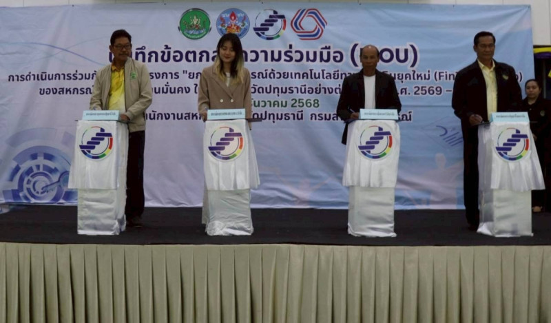 วันที่ 19 ธันวาคม 2568 นางสุรางค์ คัยนันท์ ผู้เชี่ยวชาญด้านพัฒนาธุรกิจสหกรณ์ออมทรัพย์ เป็นประธานการลงนามบันทึกข้อตกลงความร่วมมือ (MOU) การดำเนินการร่วมกันตามโครงการ "ยกระดับสหกรณ์ด้วยเทคโนโลยีทางการเงินยุคใหม่ (FinTech Co-op)" ของสหกรณ์เคหสถานบ้านมั่นคงในพื้นที่จังหวัดปทุมธานีอย่างต่อเนื่อง ปี พ.ศ. 2569 - 2571 เพื่อส่งเสริมให้สหกรณ์มีระบบการควบคุมภายในที่ดีเป็นสหกรณ์ไร้เงินสด สามารถลดข้อบกพร่องทางการเงินและส่งผลให้สหกรณ์สามารถปิดบัญชีได้ภายในระยะเวลาที่กำหนดตามกฎหมาย ตลอดจนส่งเสริมให้มีการประสานความร่วมมือกันของหน่วยงานภาคีต่างๆให้มีการบูรณาการงานร่วมกัน ทั้งในส่วนของ สำนักงานสหกรณ์จังหวัดปทุมธานี สำนักงานตรวจบัญชีสหกรณ์ปทุมธานี ศูนย์ถ่ายทอดเทคโนโลยีการสหกรณ์ที่ 1 จ.ปทุมธานี และสถาบันพัฒนาองค์กรชุมชน(องค์การมหาชน) (พอช.) ในการนี้ นางสุชาดา เคนพิทักษ์ สหกรณ์จังหวัดปทุมธานี และบุคลากรของสำนักงาน ตลอดจน หน่วยงานภาคีต่างๆที่กล่าวข้างต้น และสหกรณ์เคหสถาน จำนวน 13 แห่ง ในจังหวัดปทุมธานีได้ลงนามใน MOU ดังกล่าว อย่างพร้อมเพรียง ณ ศูนย์ถ่ายทอดเทคโนโลยีการสหกรณ์ที่ 2 อ.คลองหลวง จ.ปทุมธานี